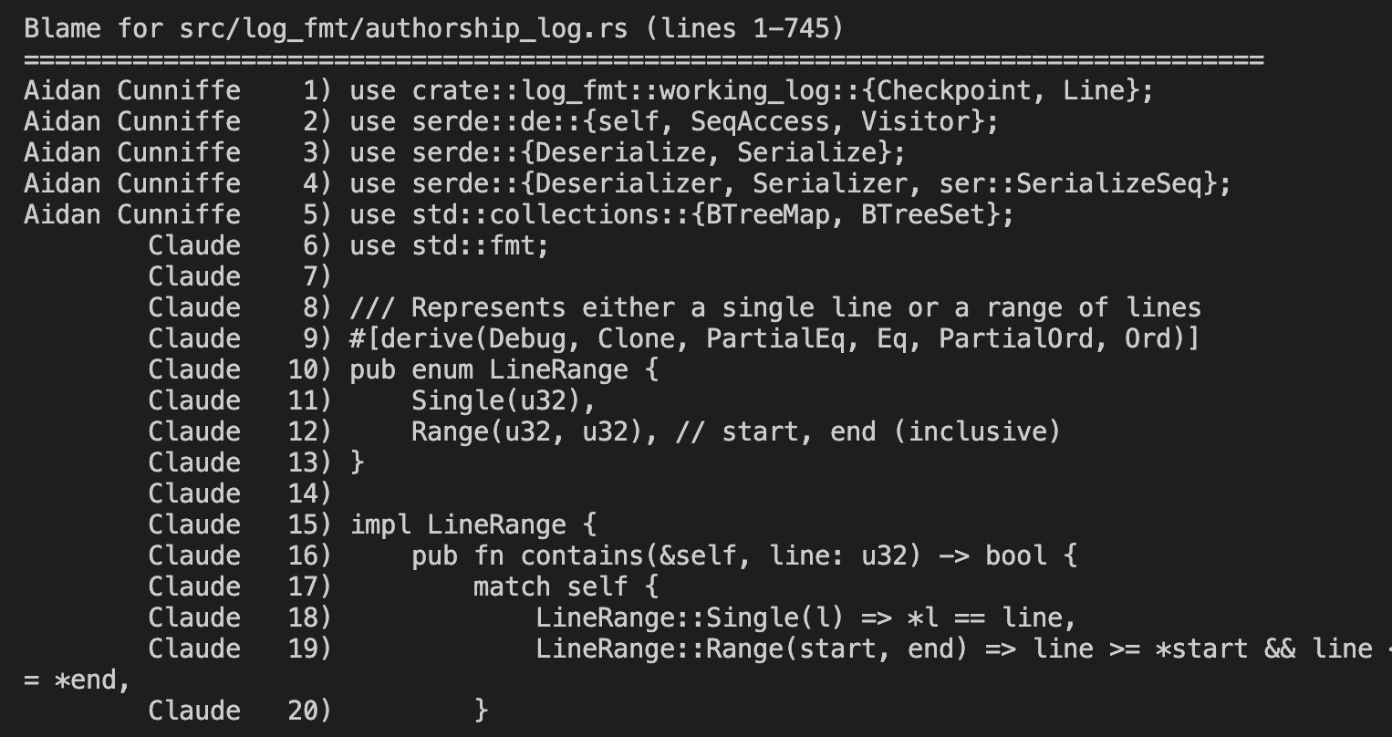 Git AI extends `git blame` with AI authorship attribution.